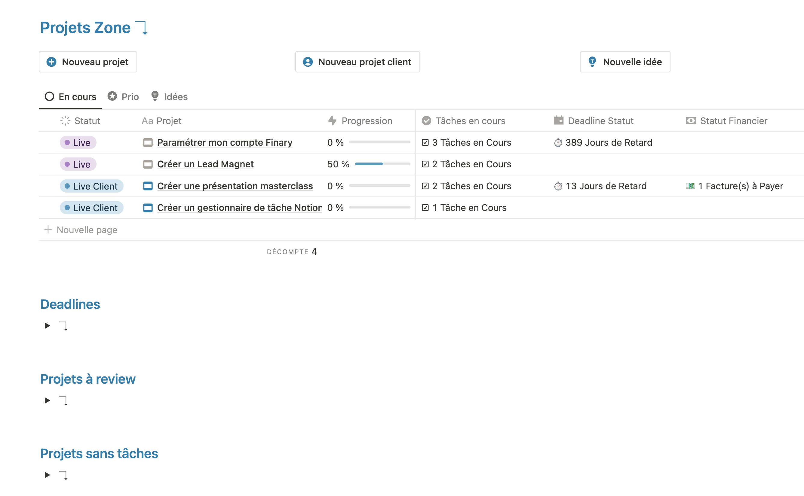 Tout le set-up a été construit sur la version gratuite de Notion.